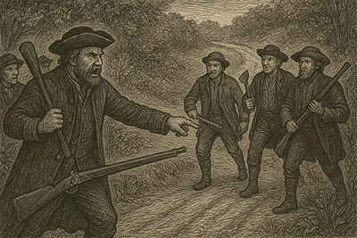 Дорога уходила между перелесками, копыта звонко стучали по разбитому грунту. Сзади доносился лёгкий треск веток — слишком ритмичный, чтобы это был случайный зверь. Один из помощников Лаврикова бросил взгляд через плечо.